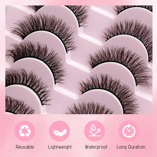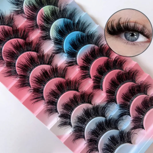 10 Pairs Pack, Dense 8D Fluffy Curved False Eyelashes, Multi-Layer Long Cross Imitation Mink Eyelashes