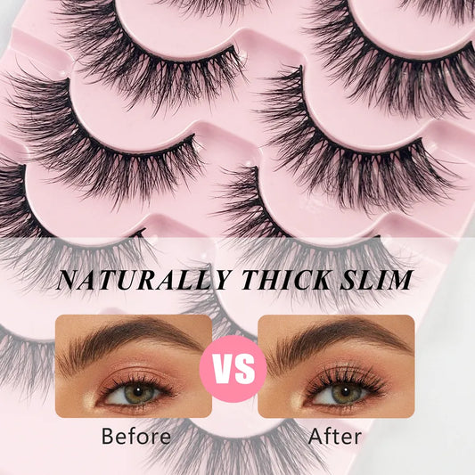 Five Pairs of Russian Curl False Eyelashes DD Curvature Dense Style Slanted Fox Eye Synthetic Fiber Eyelashes