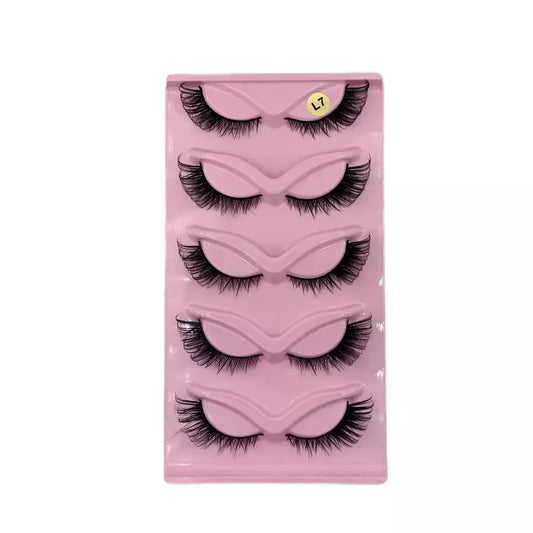 Five Pairs of Fox Style Cat Eye False Eyelashes, Artificial Fiber, Dense, Eye Tail Lengthening, 3D Eyelashes