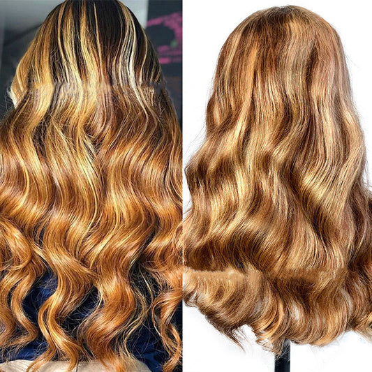 Fashion Piano Color Highlight Big Wave Wig Front Lace 13x4 Lace Long Curly Hair