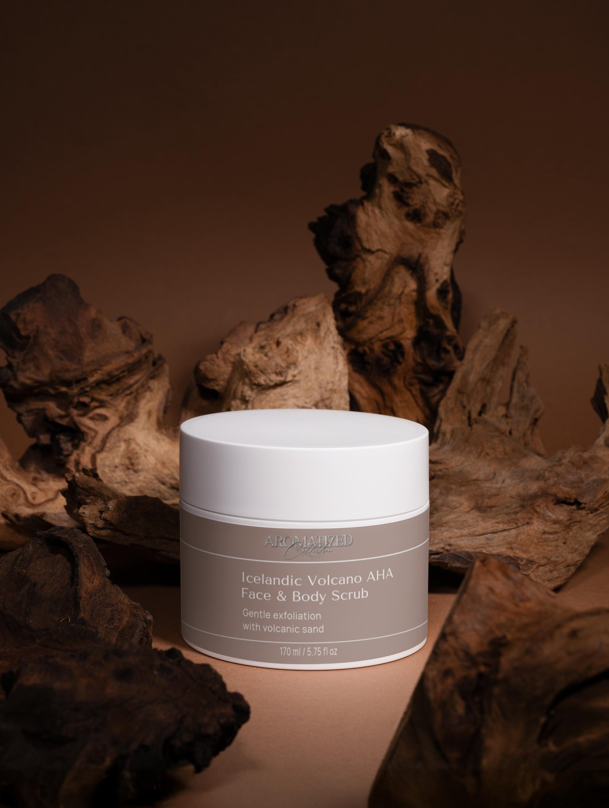 A creamy face and body scrub infused with volcanic sand to gently yet effectively exfoliate, removing dead skin cells to make the skin smooth to the touch. A high-performance Face & Body Scrub with AHA that elevates any skincare routine.