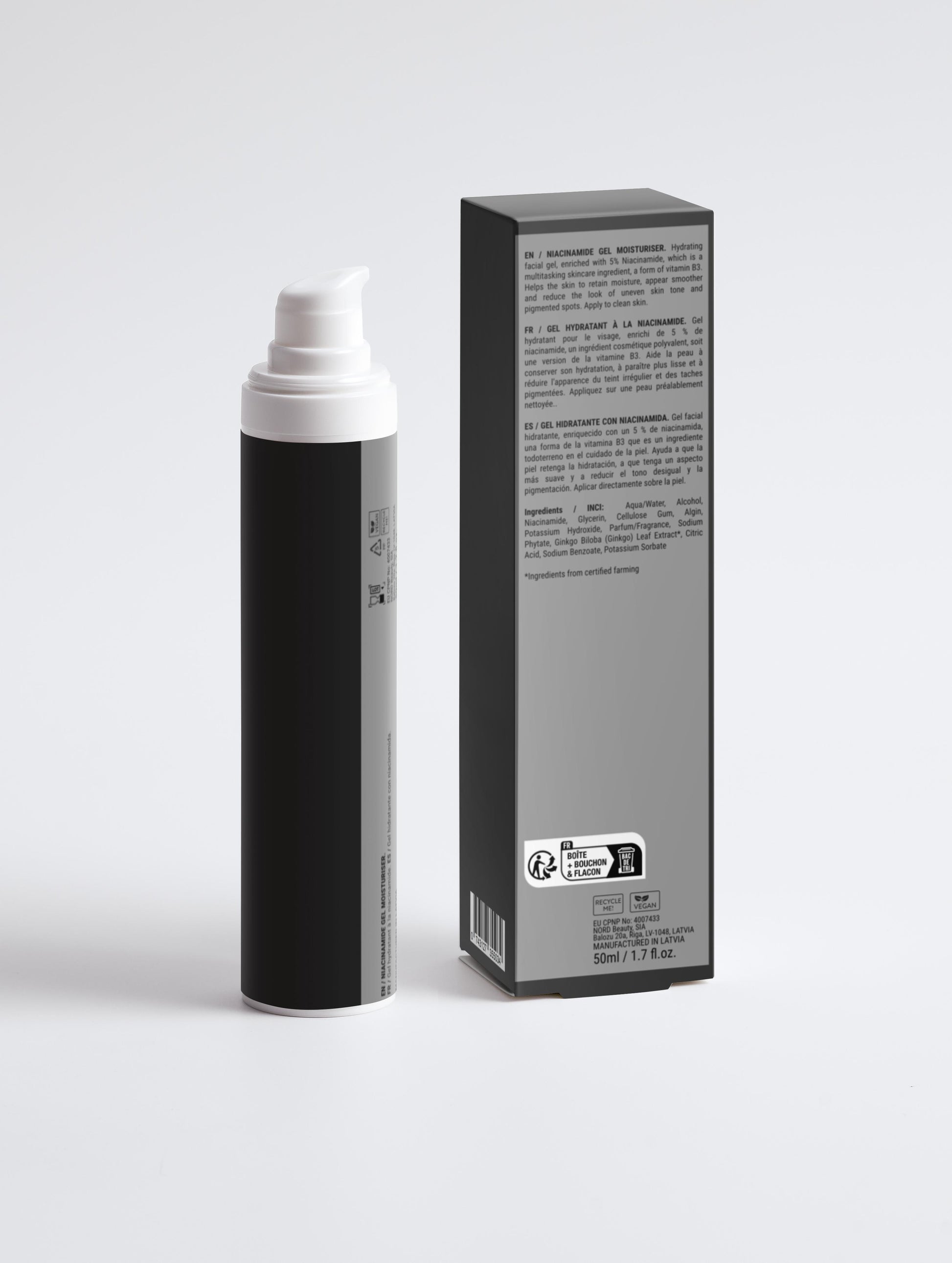 Hydrating facial gel, enriched with 5% Niacinamide, which is a multitasking skincare ingredient, a form of vitamin B3. Helps the skin to retain moisture, appear smoother and reduce the look of uneven skin tone and pigmented spots.