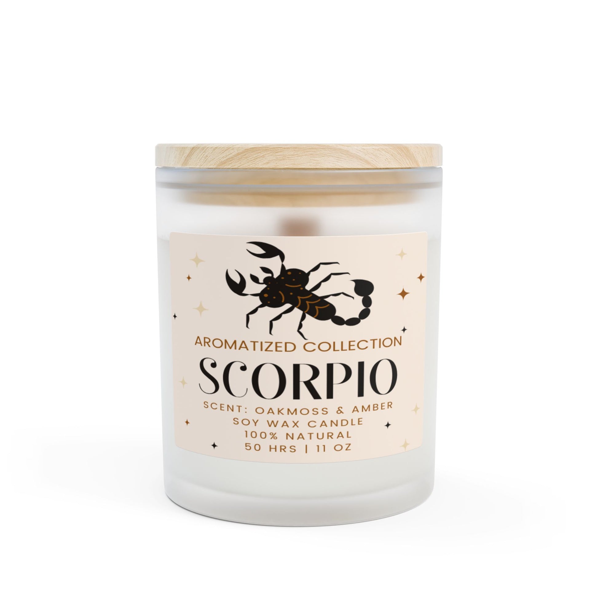 Scorpio Oakmoss & Amber Scented Candle, 11oz Frosted Glass || Zodiac Decor, Relaxation Gift, Home Fragrance, Astrology Gift, Self-Care Candle